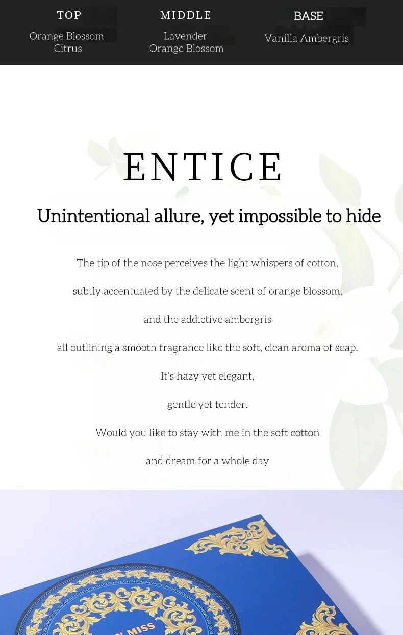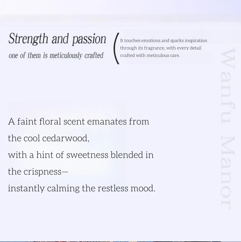 A Custom-Blended Private Fragrance with Ambroxan It boasts an evocative, rich yet cool and mysterious scent, where calm sophistication coexists with vintage elegance.